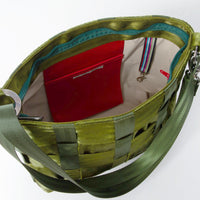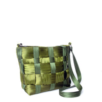 Handmade in Sydney by Axel Mano, using supple webbing, with the strength of seat belts but soft to the touch and lightweight. A lovely new iteration of the Axel Mano shoulder bag collection, for those needing a little more space. With a deep base, it opens wide and stands up nicely, giving great access inside. On one side, a large mesh pocket with zip closure. On the other, a phone pocket and a key fisher. The shoulder strap can be worn across the body at full length, or looped back onto itself for a 'short shoulder' carry.