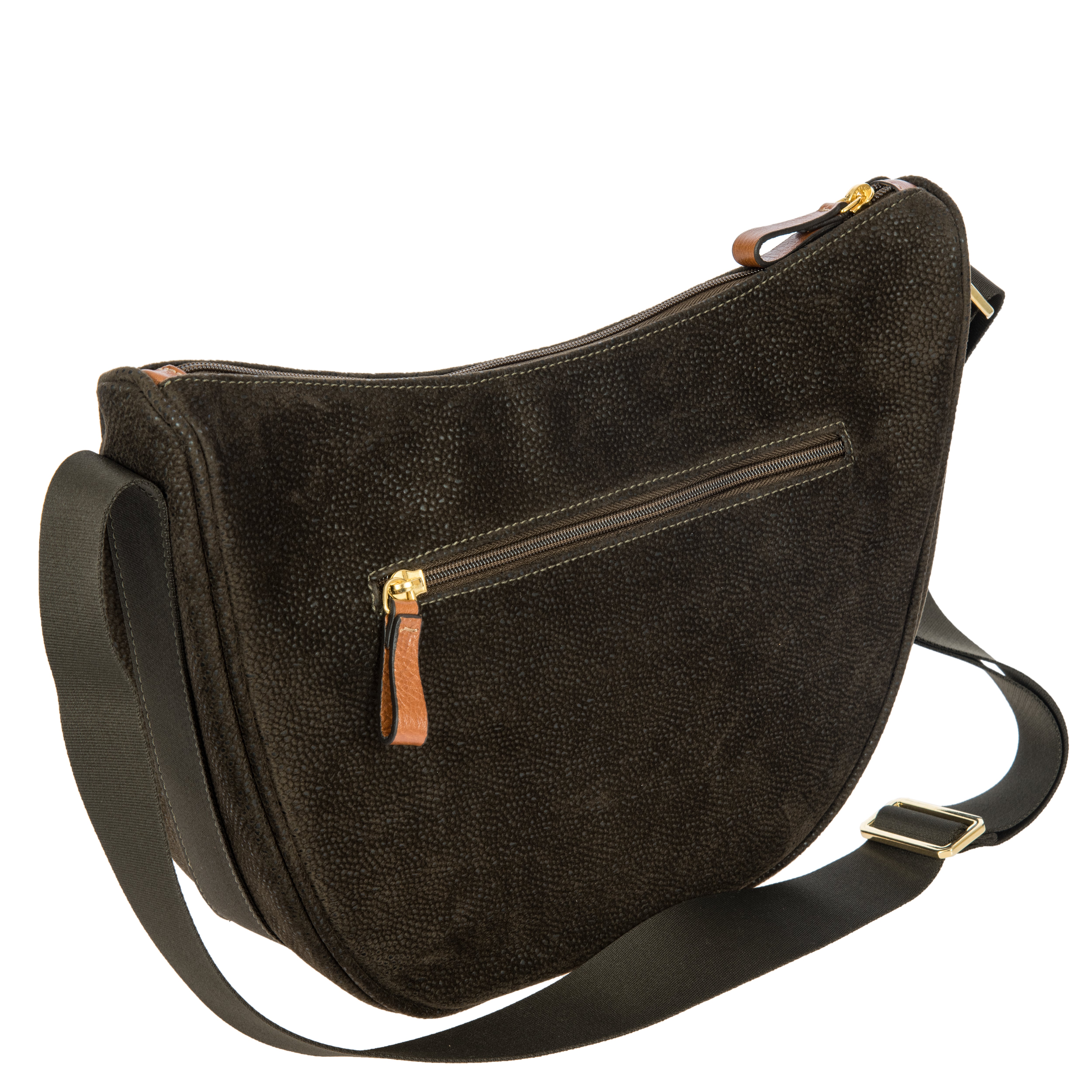 Designed and made in Italy, the Luna Bag in the Life collection is perfect for around the city and for travel, comfortably worn on the shoulder or across the body. With a full zip closure, an exterior zip pocket, and plenty of space for a day's necessities. The soft synthetic material with embossed finish is very durable and easy to clean, complemented by the fine, vegetable-tanned, Tuscan leather trim.