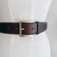 A classic belt, with a finely tapered edge, fully stitched, in the highest quality vegetable-tanned leather. The buckle features brushed brass finish.