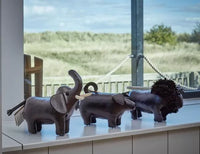 Decorate and elevate any space with our menagerie of leather animals. The Mini sized lion, featuring a leather fringed mane, makes for a stunning decorative element to any desk, mantlepiece or console.