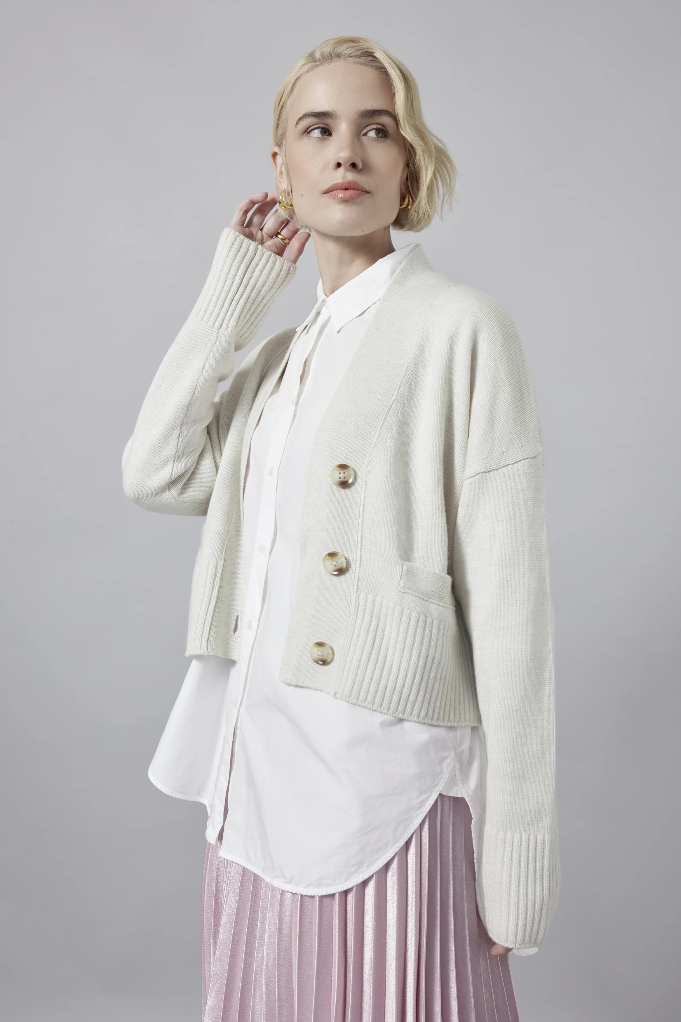 Designed with a relaxed, generous fit and a length that sits comfortably on the hip, Robyn is the versatile layer you can wear to work, weekends, dinners, or simply at home. Once it’s on, you won’t want to take it off.