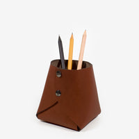 Pen pod is a perfect desk accessory for organising your workspace. Crafted from soft luxurious genuine leather our leather pen pod can hold pencils, pens, rulers and more. The leather pen pod features a wide sturdy bottom base, designed to stop pens and pencils from tipping over.